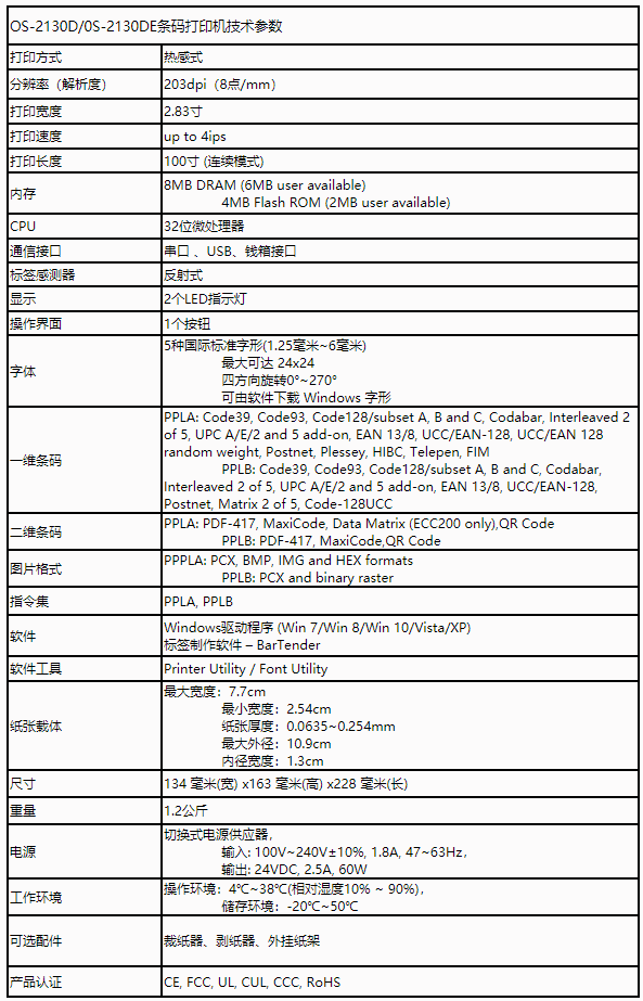 OS-2130D/OS-2130DE 為一款體積小巧的桌上型標簽條碼打印機,提供熱感式標簽打印,主要的傳輸接口為USB 2.0, 可連接筆記本計算機執(zhí)行打印,適合各種服務業(yè)使用,例如:收銀柜臺,稱重,郵件收發(fā),銀行,票務,病患追蹤,店面零售等等。