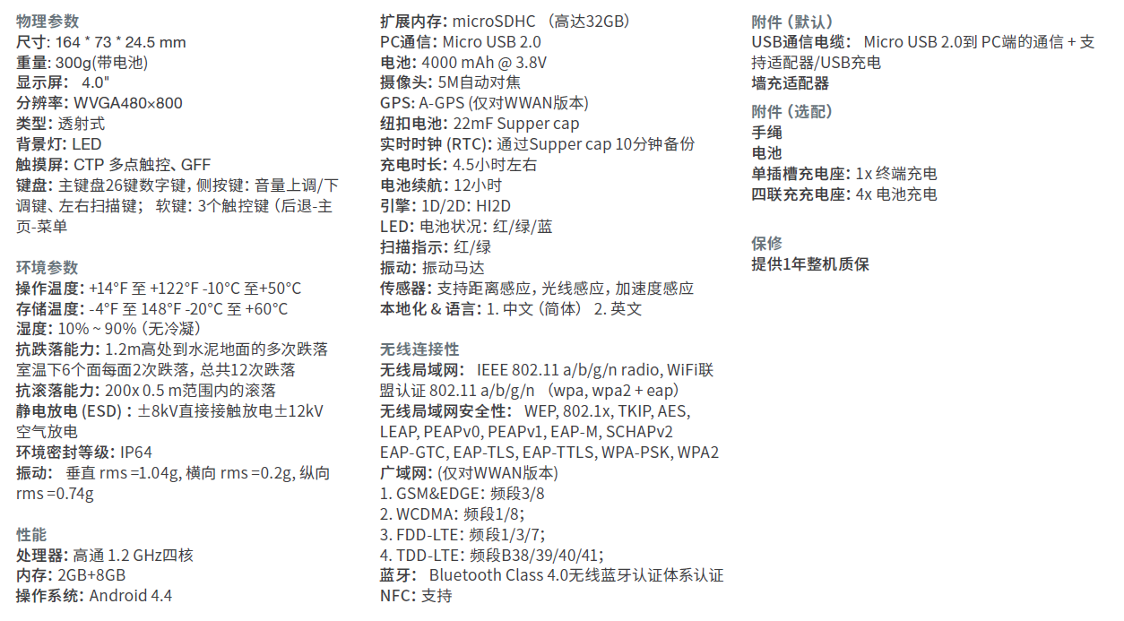 強(qiáng)大的續(xù)航能力,4000mAh 超大容量鋰離子智能電池,10000 次充電接口插拔壽命,更好的耐用性深度定制的軟件功能,為國內(nèi)客戶開發(fā)企業(yè)應(yīng)用鎖功能,方便企業(yè)管理設(shè)備使用