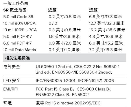 運(yùn)動容差: 掃描速度:全照明條件下每秒 100 英寸,測試 環(huán)境 — 100% UPC 條碼,80% MRD,距離外 殼 4 英寸