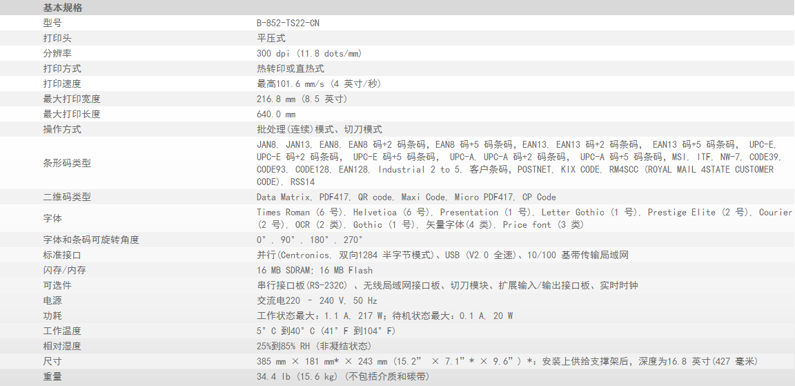 B-852 配置300 dpi 打印頭,通過直熱/熱轉(zhuǎn)印方式,完成高精度鮮明的大型標(biāo)簽的打印。盡管輸出標(biāo)簽的寬幅可達(dá)到242毫米, 但是整機(jī)緊湊設(shè)計,節(jié)省空間,可在機(jī)器前面進(jìn)行各種操作,有效地利用左右兩側(cè)的空間。