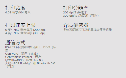 打印機能夠通過一系列標準特性應對頗為嚴苛的應用需求,包括并行,串行,USB和以太網(wǎng)連接;大容量內(nèi)存;以及Zebra變成語言。選項包括切紙器與剝離器,Bluetooth與Wi-Fi認證通信以及高分辨率打印。